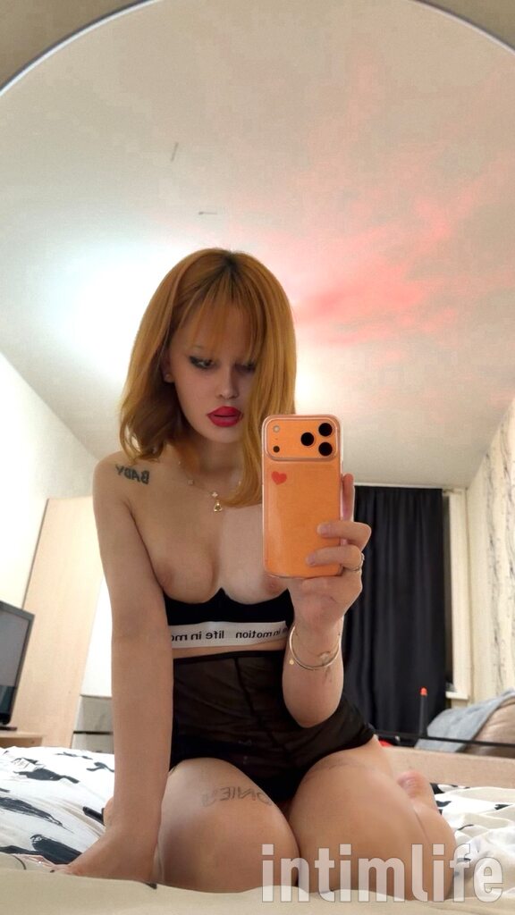 Eine Transsexuelle mit natürlichen B-Körbchen, einem knackigen Po und einem süßen Schwanz.
